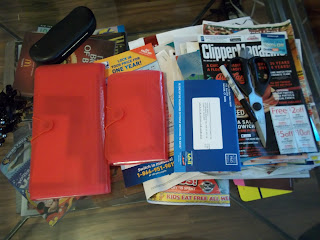 I took this mess of coupons that was just sitting on the corner of the kitchen counter, I got rid of the expired and organized them all to fit in the two red envelopes ($1 each from the Dollar Spot at Target) you see in the left of the picture. This was a great way to free up space on my kitchen counter and now I feel so much more prepared for the grocery store. In fact this weekend I saved us $20 at the BJ's Wholesale Club and between ads, in store deals, and coupons I saved us over $45.00 at the grocery store and bought meats plus a weeks worth of groceries all for around $90, not bad for a family of four, well really three Avery doesn't use much in the way of groceries...ha ha!